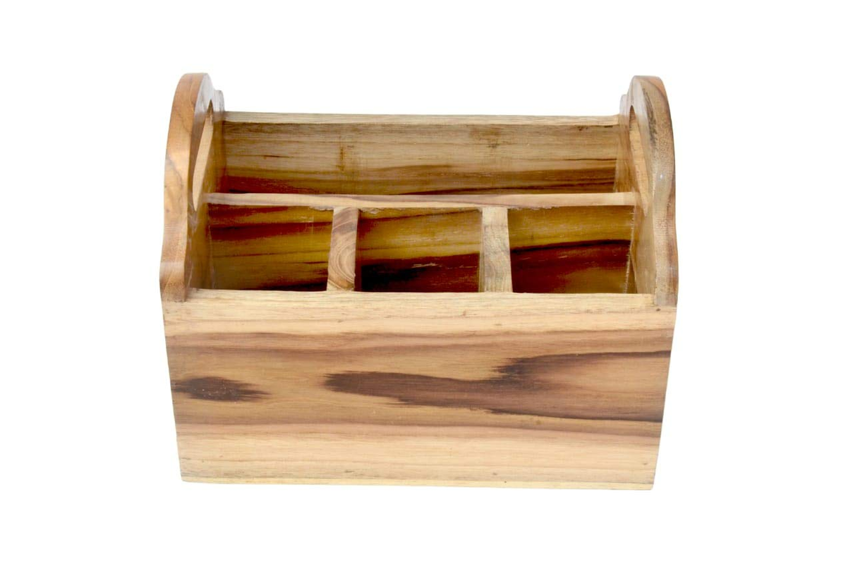 Wooden Spoon Stand for Dining Table Cutlery Holder Kitchen Rack Cafe Restaurant Bar for Spoons, Forks, Knives, Tissue Papers with Handles 4 Section (Brown)