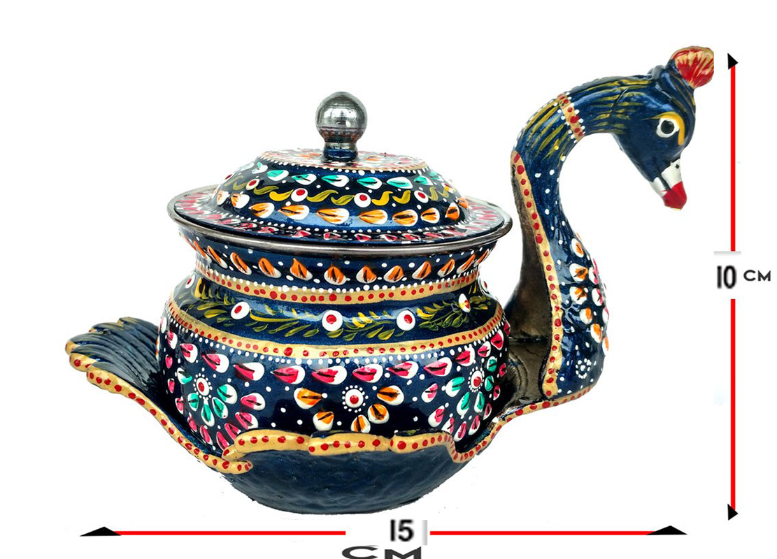 Rastogi Handicrafts Steel Hand Painted Platter Container,Kitchen Storage Bowl with Spoon and lid Dry Fruit Bowl Serving Diwali Christmas Gifts Size – (4X4X6 INCH)